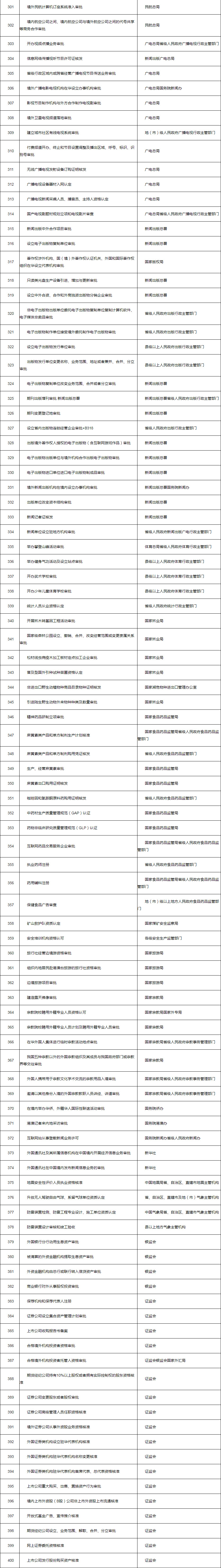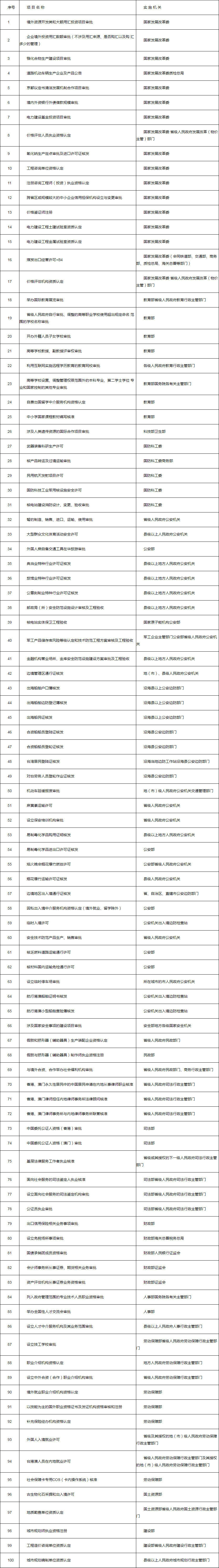 依照《中華人民共和國行政許可法》和行政審批制度改革的有關(guān)規(guī)定,國務院對所屬各部門的行政審批項目進行了全面清理。由法律、行政法規(guī)設定的行政許可項目,依法繼續(xù)實施;對法律、行政法規(guī)以外的規(guī)范性文件設定,但確需保留且符合《中華人民共和國行政許可法》第十二條規(guī)定事項的行政審批項目,根據(jù)《中華人民共和國行政許可法》第十四條第二款的規(guī)定,現(xiàn)決定予以保留并設定行政許可,共500項。