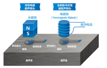 - EMAT傳感器使用脈沖式電磁鐵來取代永磁鐵。它解決了EMAT換能器被鐵磁性材料強力吸附的問題,從而使手動超聲波檢測更簡便與安全;